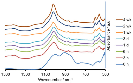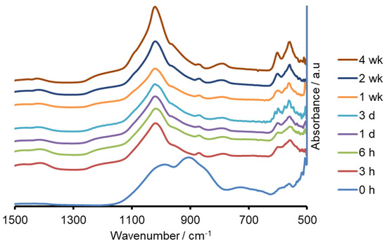 FTIR spectra of Na-FBAG before and after immersion.