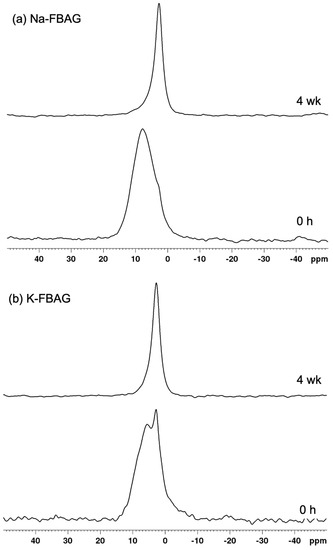 19F MAS-NMR spectra for (a) Na-FBAG and (b) K-FBAG.