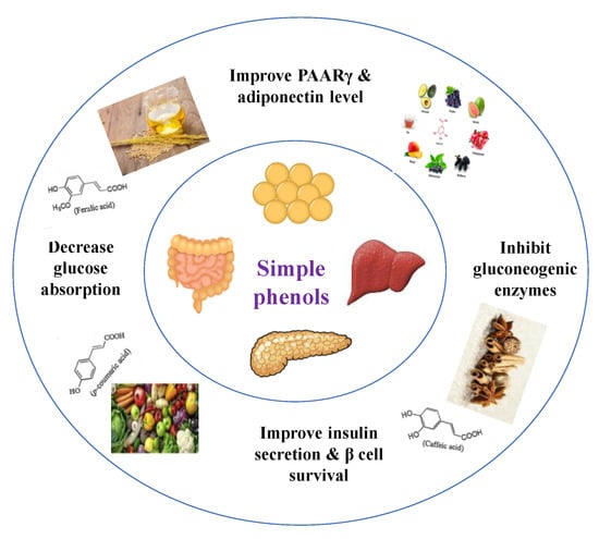 Published research has proven that several secondary metabolites demonstrate hypoglycemic activity in vivo and in vitro, and usually, they affect multiple targets, proteins and enzymes. Alkaloids, phenols, anthocyanin, flavonoids, saponins, tannins, terpenes and coumarins were found to elicit a significant influence on diabetes [,].