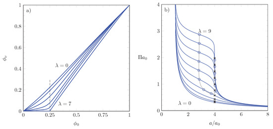 Recall that the scaled pressure can be calculated from the free energy if the function is known. If is not known analytically, but only through a numerical representation (that is, a list of values ), it will be inconvenient to carry out derivatives with respect to . We show in the following how to calculate the lateral pressure using only the function and a numerical representation of , yet no derivative of that function. To this end, it is convenient to define . This function is known explicitly (see Equation (8)), and we can carry out any partial derivatives analytically. Minimizing with respect to , i.e., setting , yields the equation