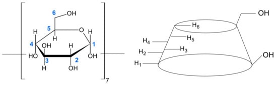 As shown in Figure 3, the inner protons H5 and H3 are the most affected among all the β-CD protons. This confirms the inclusion of a “guest” molecule into the β-CD cavity.