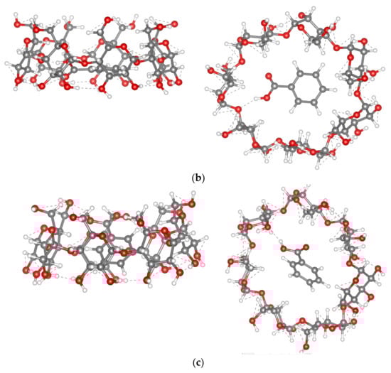 - Huang, M.-J.; Watts, J.D.; Bodor, N. Theoretical studies of inclusion complexes of α- and β-cyclodextrin with benzoic acid and phenol. Int. J. Quantum Chem. 1997, 65, 1135–1152. [Google Scholar] [CrossRef]