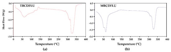 DSC traces for the β-CD fluconazole complexes, (a) TBCDFLU and (b) MBCDFLU.