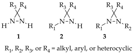 - Makhova, N.N.; Petukhova, V.Y.; Kuznetsov, V.V. Synthesis of monocyclic diaziridines and their fused derivatives. Arkivoc 2008, 2008, 128–152. [Google Scholar] [CrossRef] [Green Version]