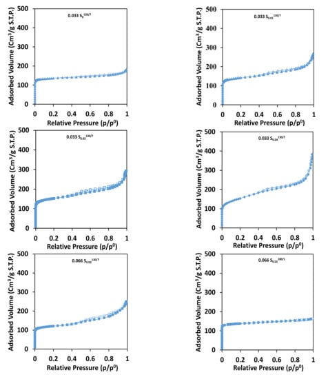 2.1. Effect of the Molar Concentration of CTAB on the Textural Properties