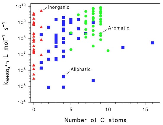 - Furman, O.; Teel, A.; Ahmad, M.; Merker, M.C.; Watts, R.J. Effect of Basicity on Persulfate Reactivity. J. Environ. Eng. 2011, 137, 241–247. [Google Scholar] [CrossRef]