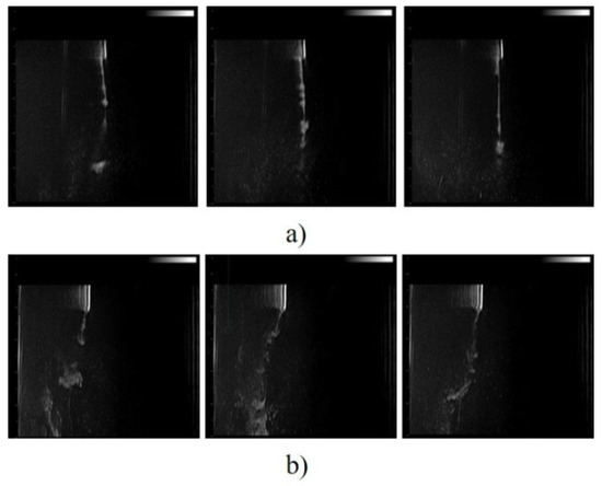 After injecting MOLNBs in the setup under US and monitoring the effect of the magnetic field, a significant deviation in MOLNBs’ motion toward the magnets was observed (Figure 12b) with respect to the homogeneous flow of MOLNBs in the vertical direction in the absence of a magnetic field (Figure 12a).