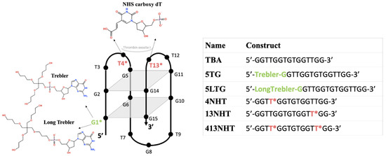 Modifications introduced in the thrombin binding aptamer and the different constructs used in this study.