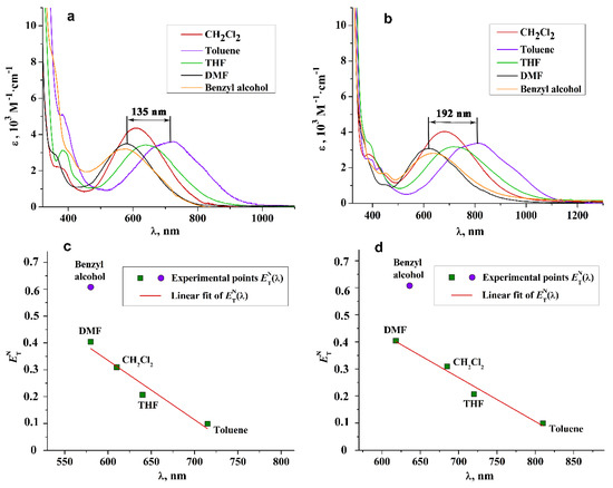 | CH2Cl2 | 610 (4.35) | 2.033 | 685 (4.04) | 1.810 | 75 | 0.223 | |