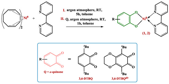 - Yang, H.; Zhao, Y.; Liu, B.; Su, J.-H.; Fedushkin, I.L.; Wu, B.; Yang, X.-J. Noninnocent ligands: Heteroleptic nickel complexes with α-diimine and 1,2-diketone derivatives. Dalton Trans. 2017, 46, 7857–7865. [Google Scholar] [CrossRef]