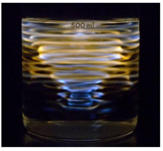 - Gaitan, D.F.; Crum, L.A. Observation of sonoluminescence from a single, stable cavitation bubble in a water glycerin mixture. In Frontiers of Nonlinear Acoustics, Proceedings of the 12th ISNA, Austin, TX, USA, 27–31 August 1990; Hamilton, M.F., Blackstock, D.T., Eds.; Elsevier: London, UK, 1990; pp. 459–463. [Google Scholar]