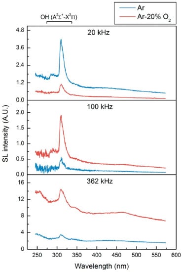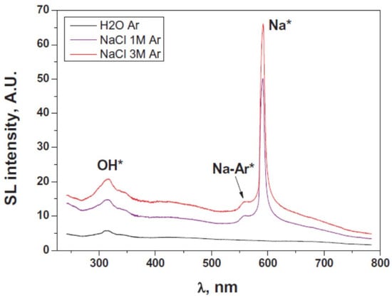 - Hayashi, Y.; Choi, P. Two components of Na emission in sonoluminescence spectrum from surfactant aqueous solutions. Ultrason. Sonochem. 2015, 23, 333–338. [Google Scholar] [CrossRef]