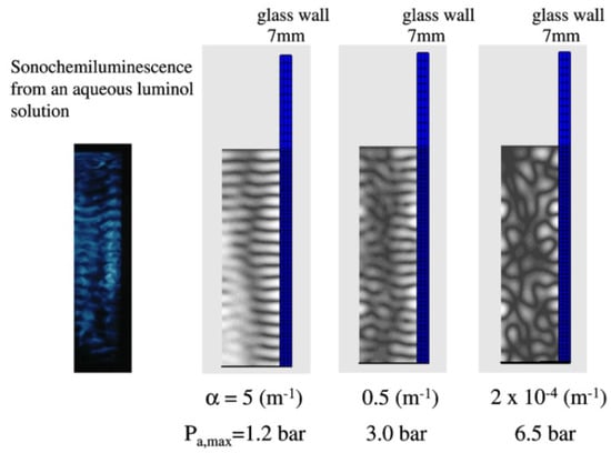 - Lee, J.; Yasui, K.; Tuziuti, T.; Kozuka, T.; Towata, A.; Iida, Y. Spatial distribution enhancement of sonoluminescence activity by altering sonication and solution conditions. J. Phys. Chem. B 2008, 112, 15333–15341, Erratum 2009, 113, 12438. [Google Scholar] [CrossRef] [PubMed][Green Version]