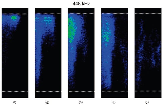 - Thiemann, A.; Nowak, T.; Mettin, R.; Holsteyns, F.; Lippert, A. Characterization of an acoustic cavitation bubble structure at 230 kHz. Ultrason. Sonochem. 2011, 18, 595–600. [Google Scholar] [CrossRef] [PubMed]