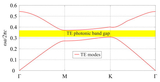 = 0.3092–0.3706). We have considered the conventional notation in the PhC literature for TE modes, in which the electric field is confined to the periodicity plane of the PhC (xy-plane in this paper) [