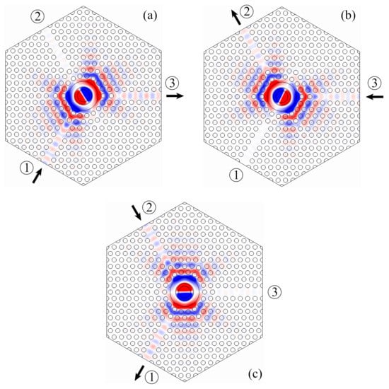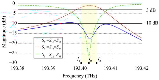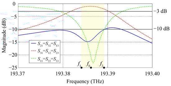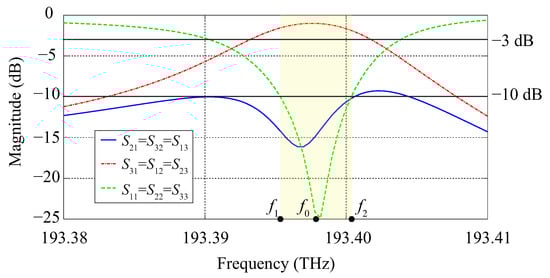6) and those obtained from the computational simulations of the device. It is worth noting that these equations are very general and can be used to describe similar Y-shaped circulators with three-fold rotational symmetry based on different technologies (e.g., PhC, microstrip, stripline, etc.).