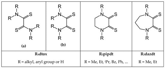- tom Dieck, H.; Form, M. C-N Twisted Ethanedithioamides in Electron-Rich Complexes. Angew. Chem. Int. Ed. 1975, 14, 250–251. [Google Scholar] [CrossRef]