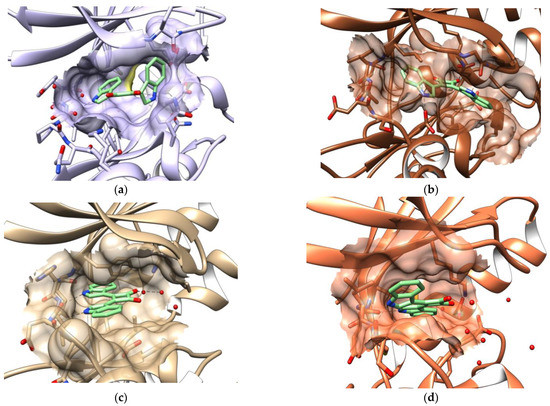 For docking studies, the plasmodial protein kinase crystal structures 1V0P, 4MVF, 2PML, 3LLT, and 3NIE were downloaded from the Protein Data Bank [32] and three homology models of PfGSK-3 were selected, which had been created using the crystal structures of human GSK-3 (pdb-id: 1J1B, 2OW3 and 1R0E, respectively) [33]. After protonation optimization and energy minimization (defaults) conducted with MOE (Molecular Operating Environment, 2013.08 ed., Chemical Computing Group Inc. Montreal, QB, Canada), the .pdb files of the protein structures were used for the subsequent docking experiments. In the same way, the ligands were prepared with MOE and saved as mol2 files. The docking experiments were carried out with GOLD Suite 2.2.5 [31] without the definition of constraints. The spatial extent of the ATP binding pocket was defined as a 10 Å zone with respect to either the originally enclosed ligand or, in the homology models, with respect to the gatekeeper residue. After the relevant water molecules in the binding pocket for the automatic toggle were established, the remaining water molecules were removed. For the respective ligands, ten genetic algorithm runs were generated, the options “save lone pairs” and “allow early termination” being disabled. The docking accuracy was set to 200%. The evaluated docking solutions by the integrated ChemScore.kinase templates were stored with ChemScore values in descending order as .mol2 or .sdf files. The thus rated poses were mapped and analyzed using the visualization program Chimera [51]. By additional visual inspection, the poses were interpreted regarding meaningful orientation, considering important polar interactions, occupation of the hydrophobic back pocket, and optional formation of halogen bonds. Chimera is developed by the Resource for Biocomputing, Visualization, and Informatics at the UCSF (supported by NIFMS P41-GM103311).