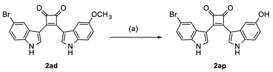Synthesis of bisindolylcyclobutenedione 2ap. Reagents and Conditions: (a) 1. BBr3 (8–16 eq), CH2Cl2, RT, 15 h, 2. H2O, RT, 1 h.