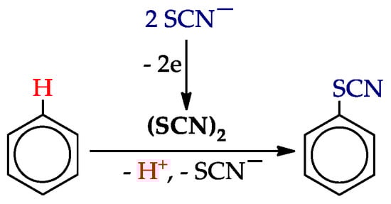 One of the key intermediates of C‒H thiocyanation of arenes is the well-known [96,97] pseudohalogene thiocyanogen (SCN)2. It is usually obtained in situ by chemical or electrochemical oxidation of the thiocyanate ion (Scheme 12).
