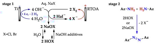 - Wawzonek, S.; McIntyre, T. Electrolytic preparation of azobenzenes. J. Electrochem. Soc. 1972, 119, 1350. [Google Scholar] [CrossRef]