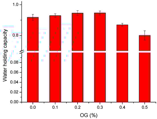 According to WHC, sensory evaluation, and rheological characteristics results, the optimal addition amount of OG is 0.3%.