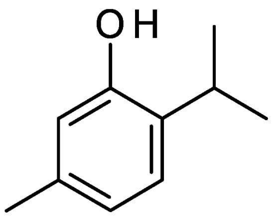 - Jeon, J.-H.; Park, J.-H.; Lee, H.-S. 2-Isopropyl-5-methylphenol isolated from Ruta graveolens and its structural analogs show antibacterial activity against food borne bacteria. J. Korean Soc. Appl. Biol. Chem. 2014, 57, 485–490. [Google Scholar] [CrossRef]