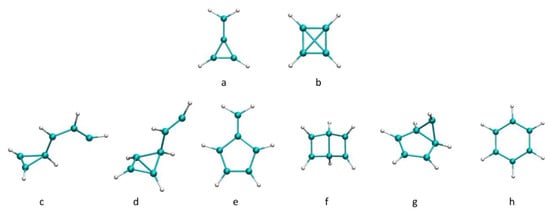 - Momoh, P.O.; Hamid, A.M.; Abrash, S.A.; Samy El-Shall, M. Structure and Hydration of the C4H4•+ Ion Formed by Electron Impact Ionization of Acetylene Clusters. J. Chem. Phys. 2011, 134, 204315. [Google Scholar] [CrossRef] [Green Version]