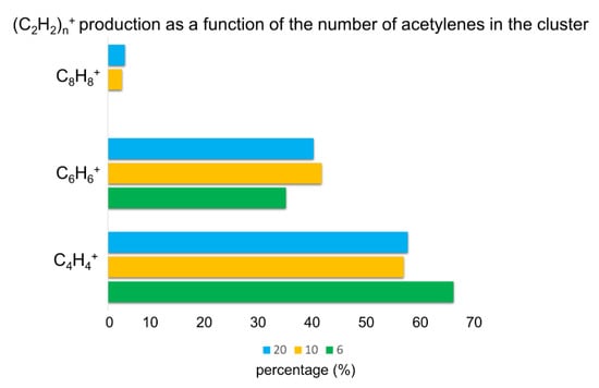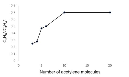 - Momoh, P.O.; Abrash, S.A.; Mabrouki, R.; El-Shall, M.S. Polymerization of Ionized Acetylene Clusters Into Covalent Bonded Ions: Evidence for The Formation of Benzene Radical Cation. J. Am. Chem. Soc. 2006, 128, 12408–12409. [Google Scholar] [CrossRef] [Green Version]
