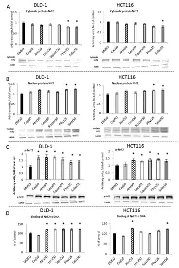- Akhdar, H.; Loyer, P.; Rauch, C.; Corlu, A.; Guillouzo, A.; Morel, F. Involvement of Nrf2 Activation in Resistance to 5-Fluorouracil in Human Colon Cancer HT-29 Cells. Eur. J. Cancer 2009, 45, 2219–2227. [Google Scholar] [CrossRef]