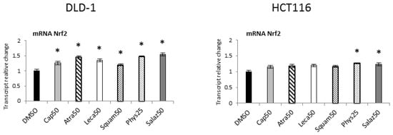 - Cheung, K.L.; Lee, J.H.; Khor, T.O.; Wu, T.Y.; Li, G.X.; Chan, J.; Yang, C.S.; Kong, A.N.T. Nrf2 Knockout Enhances Intestinal Tumorigenesis in Apcmin/+ Mice Due to Attenuation of Anti-Oxidative Stress Pathway While Potentiates Inflammation. Mol. Carcinog. 2012, 53, 77–84. [Google Scholar] [CrossRef]