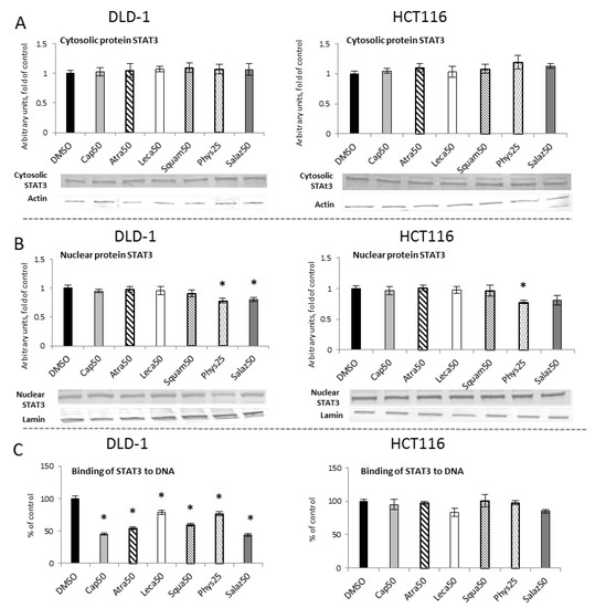 2.5. The Effect of Lichen Secondary Metabolites on the Activation of the STAT3