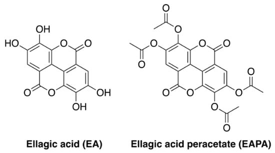 - Kumar, A.; Tyagi, Y.K.; Seema; Ponnan, P.; Rohil, V.; Prasad, A.K.; Dwarkanath, B.S.; Parmar, V.S.; Raj, H.G. Ellagic acid peracetate is superior to ellagic acid in the prevention of genotoxicity due to aflatoxin B1 in bone marrow and lung cells. J. Pharm. Pharmacol. 2007, 59, 81–86. [Google Scholar] [CrossRef] [PubMed]