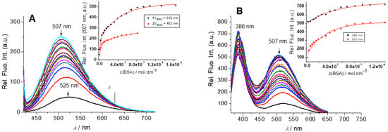 3.4. Fluorescence Quantum Yields and Fluorescence Decays