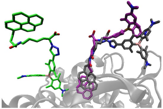 - Šmidlehner, T.; Badovinac, M.; Piantanida, I. Pyrene–cyanine conjugates as multipurpose fluorescent probes for non-covalent recognition of ds-DNA, RNA and proteins. New J. Chem. 2018, 42, 6655–6663. [Google Scholar] [CrossRef]
