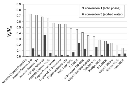Vex. Hence, the differences between the phase ratios defined by the two conventions depend on the composition of the mobile phase and are more significant for columns with stronger water uptake.