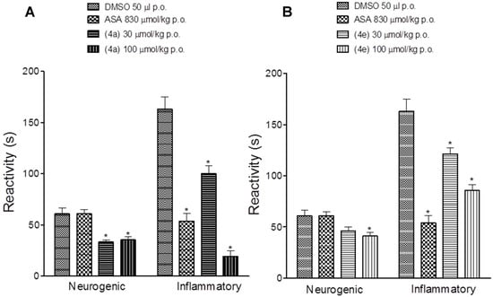 3.2. Antinociceptive and Anti-Inflammatory Pharmacological Evaluation