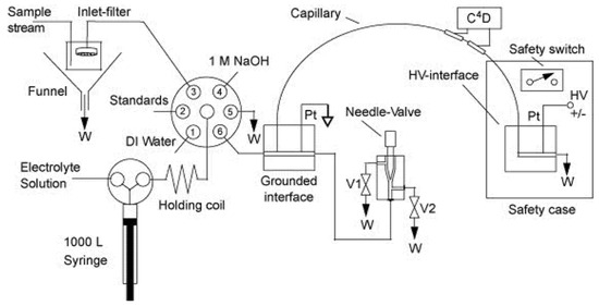 - Duc Mai, T.; Schmid, S.; Müller, B.; Hauser, P.C. Capillary electrophoresis with contactless conductivity detection coupled to a sequential injection analysis manifold for extended automated monitoring applications. Anal. Chim. Acta 2010, 665, 1–6. [Google Scholar]