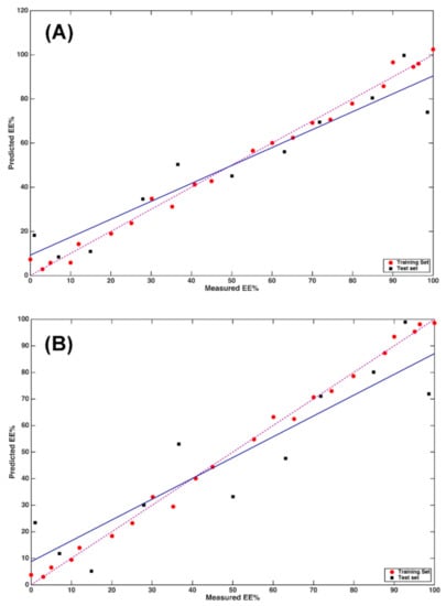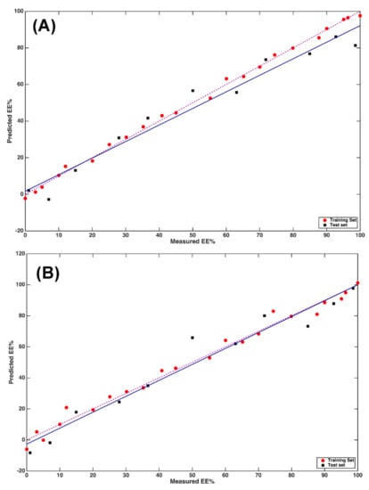 The results are also graphically displayed as predicted vs. observed EE% values in Figure 3B.