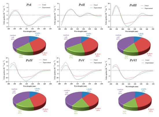 - Micsonai, A.; Wien, F.; Kernya, L.; Lee, Y.H.; Goto, Y.; Refregiers, M.; Kardos, J. Accurate secondary structure prediction and fold recognition for circular dichroism spectroscopy. Proc. Natl. Acad. Sci. USA 2015, 112, E3095–E3103. [Google Scholar] [CrossRef] [Green Version]