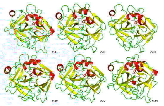 4.7. Identification of Functional Proteins, PvI–PvVI