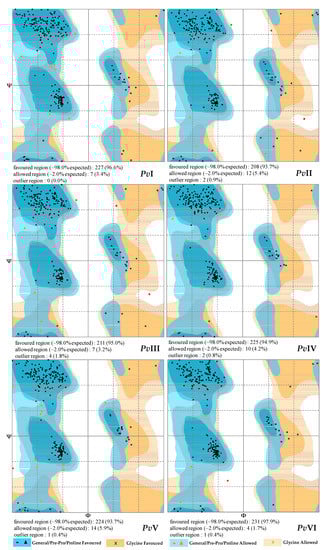 - Bosco, K.H.; Brasseur, R. The Ramachandran plots of glycine and pre-proline. BMC Struct. Biol. 2005, 5, 14. [Google Scholar]