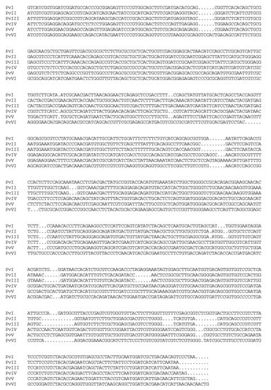 | PvVI | PvVI-F PvVI-R | 5′-ATCGTCGGAGGGCAGGAAGC-3′ 5′-TCAGTTGTTGTTAATGATGTTCG-3′ | 57.9 50.0 |