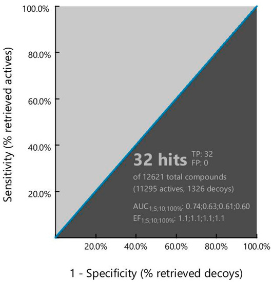 29. Mysinger, M.M.; Carchia, M.; Irwin, J.J.; Shoichet, B.K. Directory of useful decoys, enhanced (DUD-E): Better ligands and decoys for better benchmarking. J. Med. Chem. 2012, 55, 6582–6594. [Google Scholar] [CrossRef]