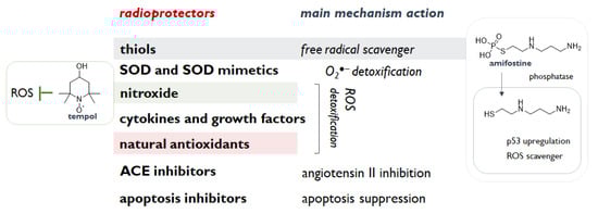 Radioprotectors’ categories and main ascribed mechanisms of action.