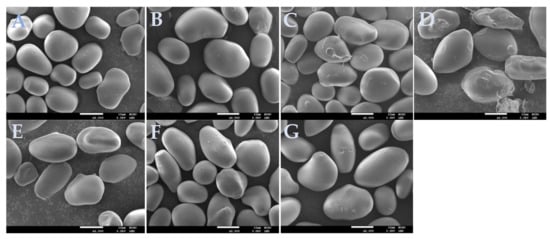3.5. Morphological Observation of Starch Granules
