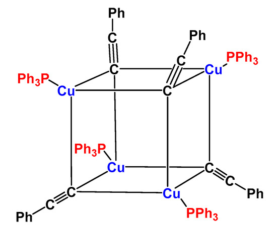 Scheme of the [Cu(PPh3)(C≡CPh)]4 tetramer complex [22].