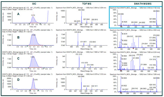 - Bennett, R.N.; Mellon, F.A.; Foidl, N.; Pratt, J.H.; Dupont, M.S.; Perkins, L.; Kroon, P.A. Profiling glucosinolates and phenolics in vegetative and reproductive tis- sues of the multi-purpose trees Moringa oleifera L. (horseradish tree) and Moringa stenopetala L. J. Agric. Food Chem. 2003, 51, 3546–3553. [Google Scholar] [CrossRef]