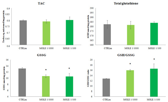3.3. Evaluation of Redox Status after MOLE Treatment