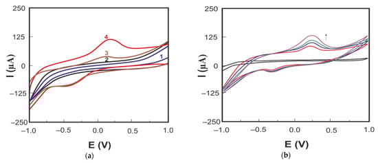 Cyclic voltammograms of carbaryl in PBS (pH 6.86) on LRGO plane (curve 3) and LRGO grid (curve 4) electrode are shown in Figure 5a.
